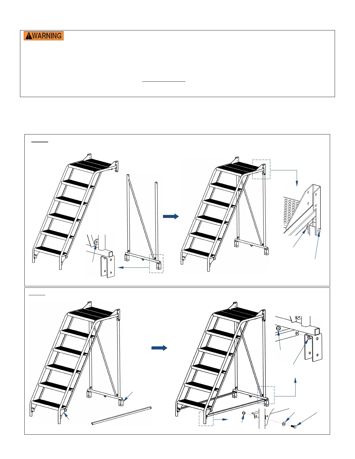 • DO NOT assemble the ladder by yourself. At least 2 people are needed for assembly.