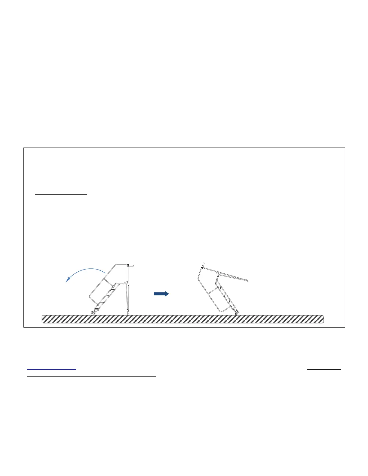 handrails, and rotating the ladder towards you until both wheels contact the ground and are able to roll. Push the