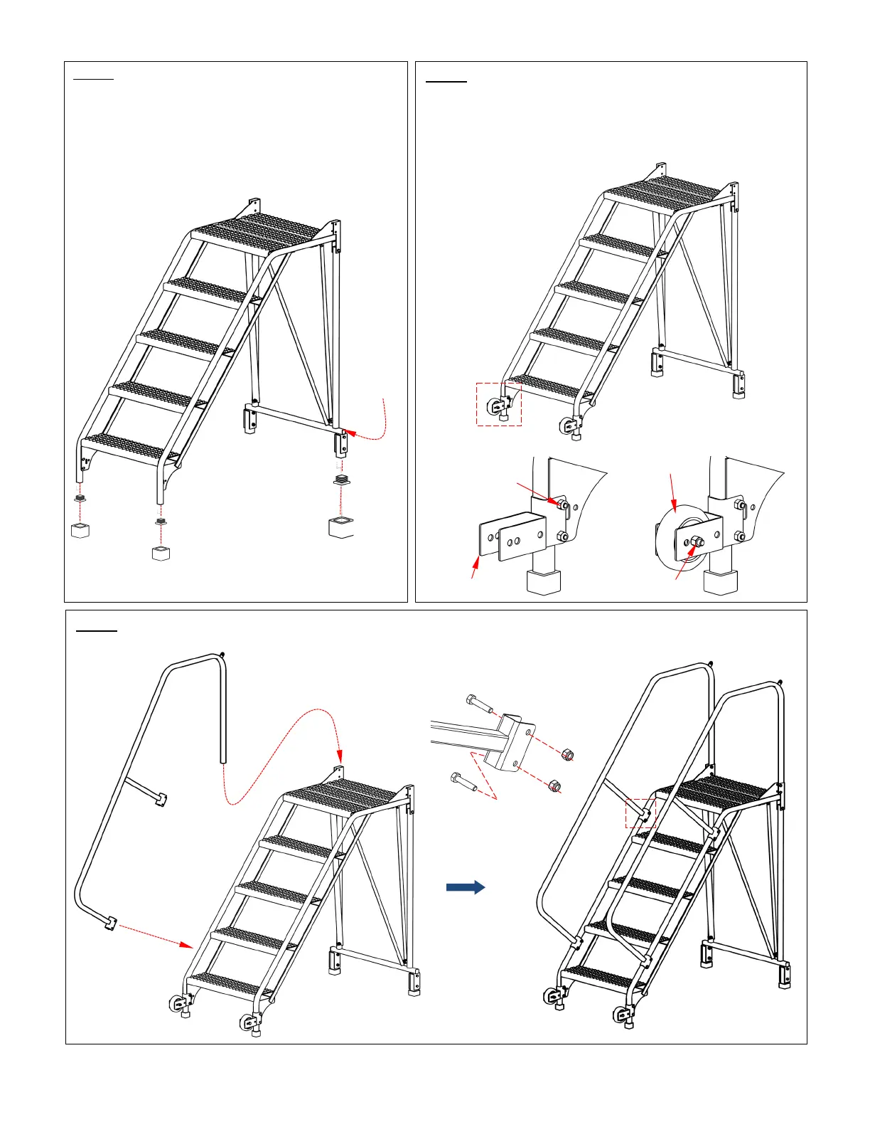Step 5: Attach the handrails to the side rails of the ladder assembly with