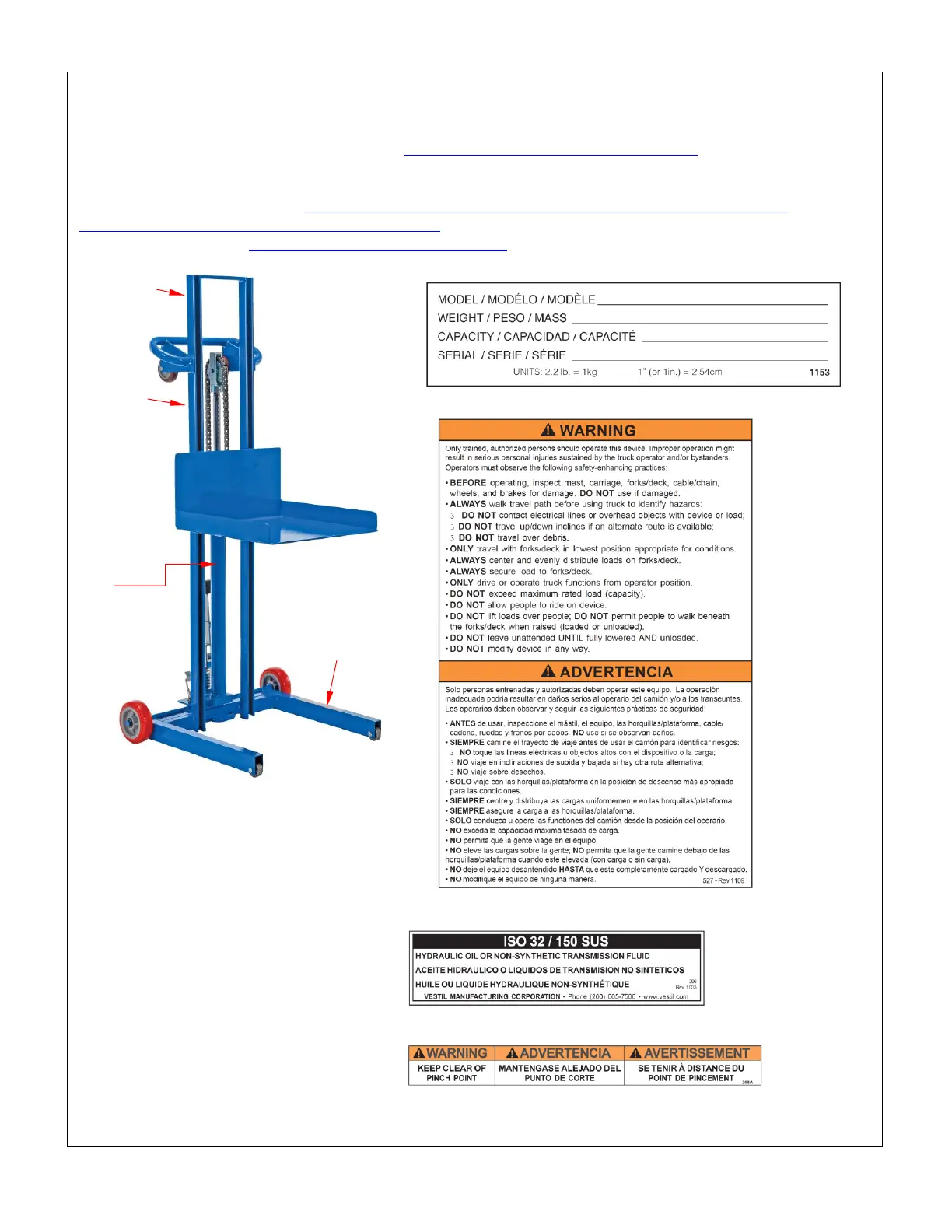 Vestil LLH-202053-FWFL handleiding