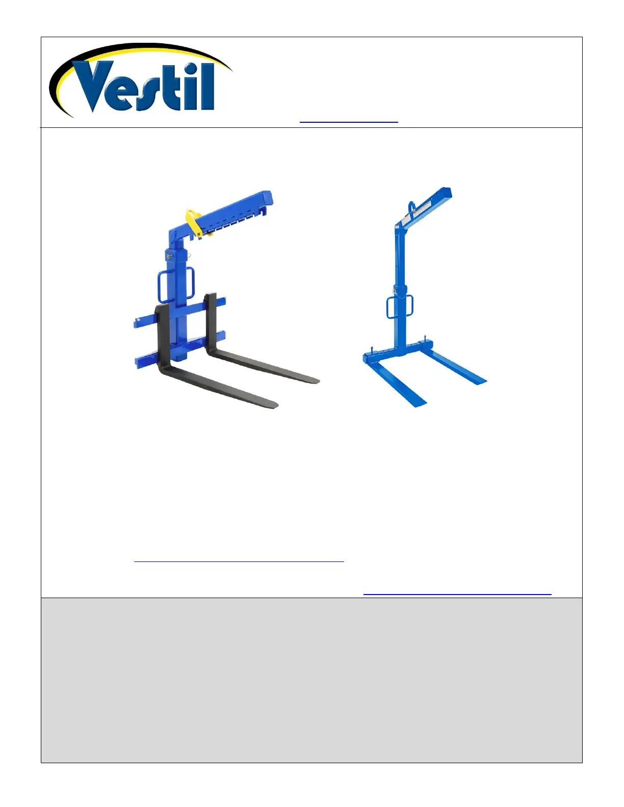 Additional copies of this instruction manual may be downloaded from https://www.vestil.com/page-manuals.php.