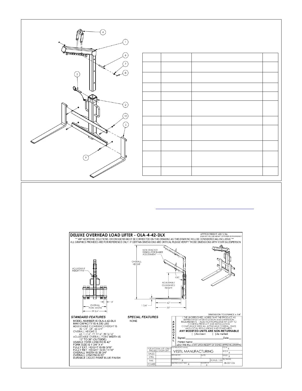 Documents that provide specifications for OLA-#-##-DLX are available online to anyone who visits Vestil’s