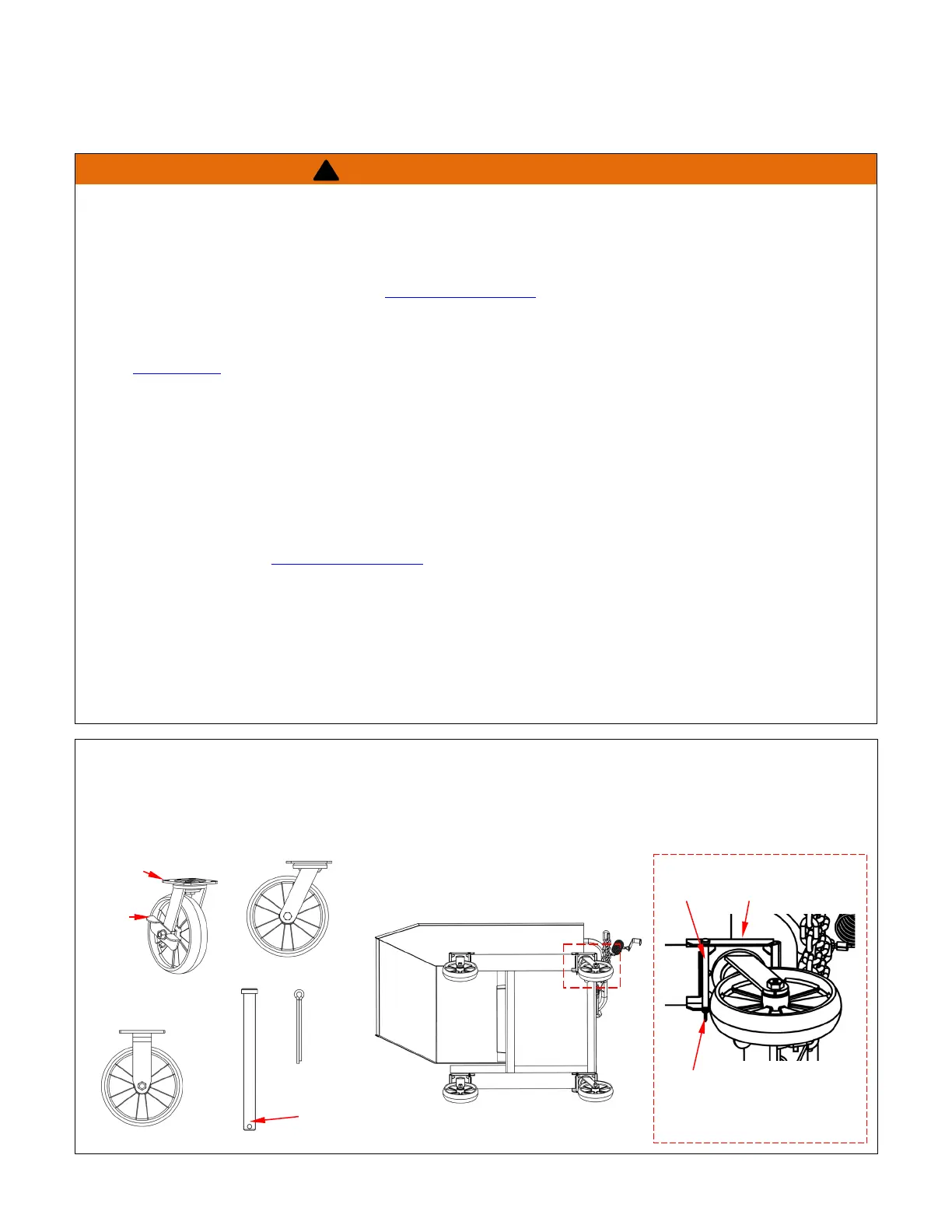 • ALWAYS engage the caster brake when the hopper is stationary/not in use.