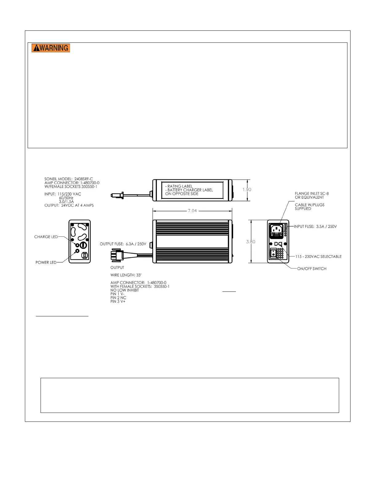 Every DC powered PEL is equipped with an onboard battery charger with a flanged electrical inlet. The charger is current