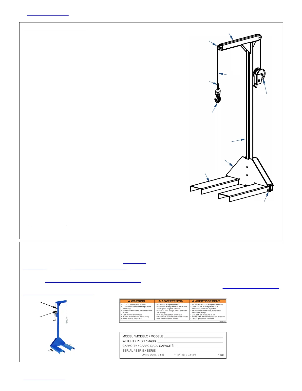 1. Winch and pulleys: Cycle the hook up and down. Confirm