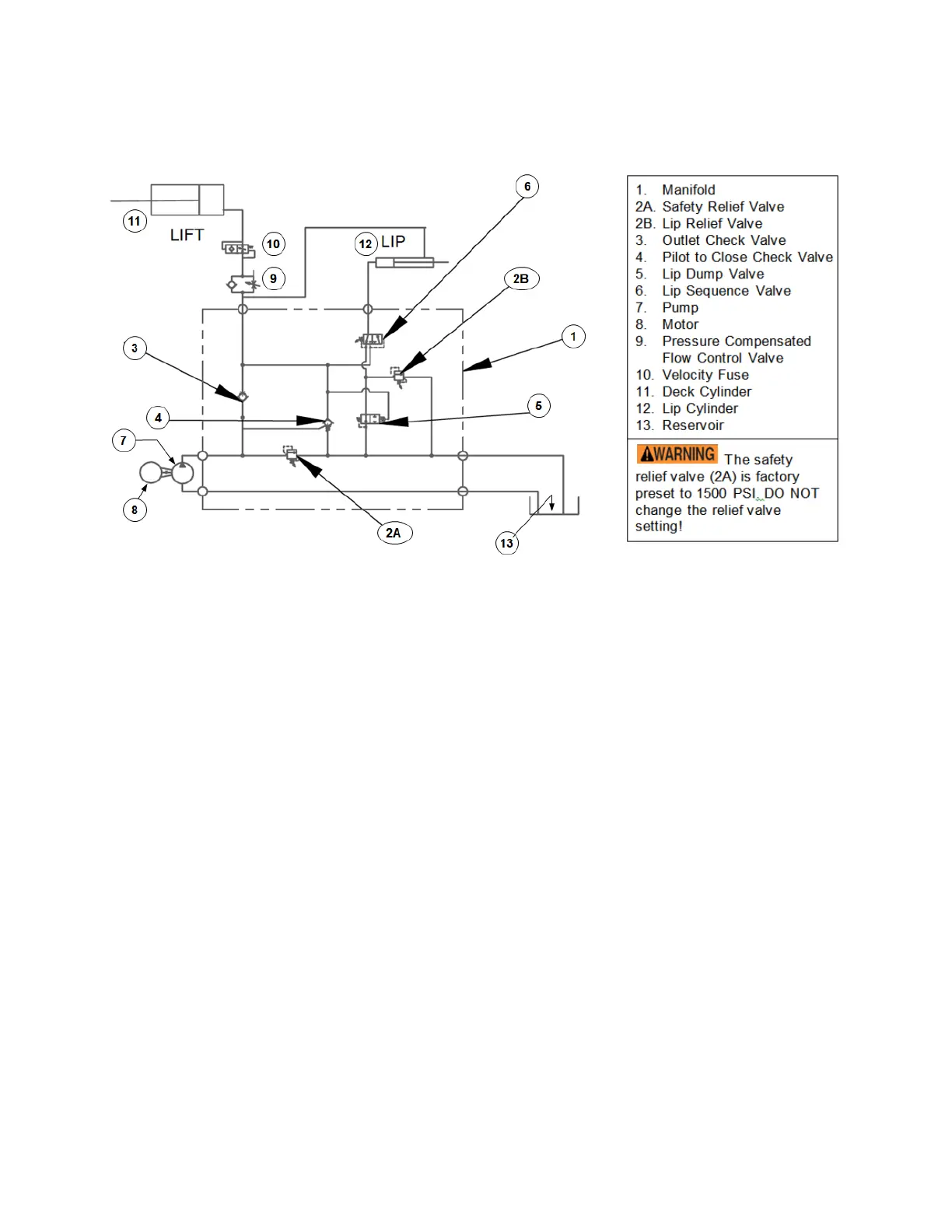 sequence valve (6). The sequence valve is factory set to 700 PSI, unless the deck’s weight requires a different