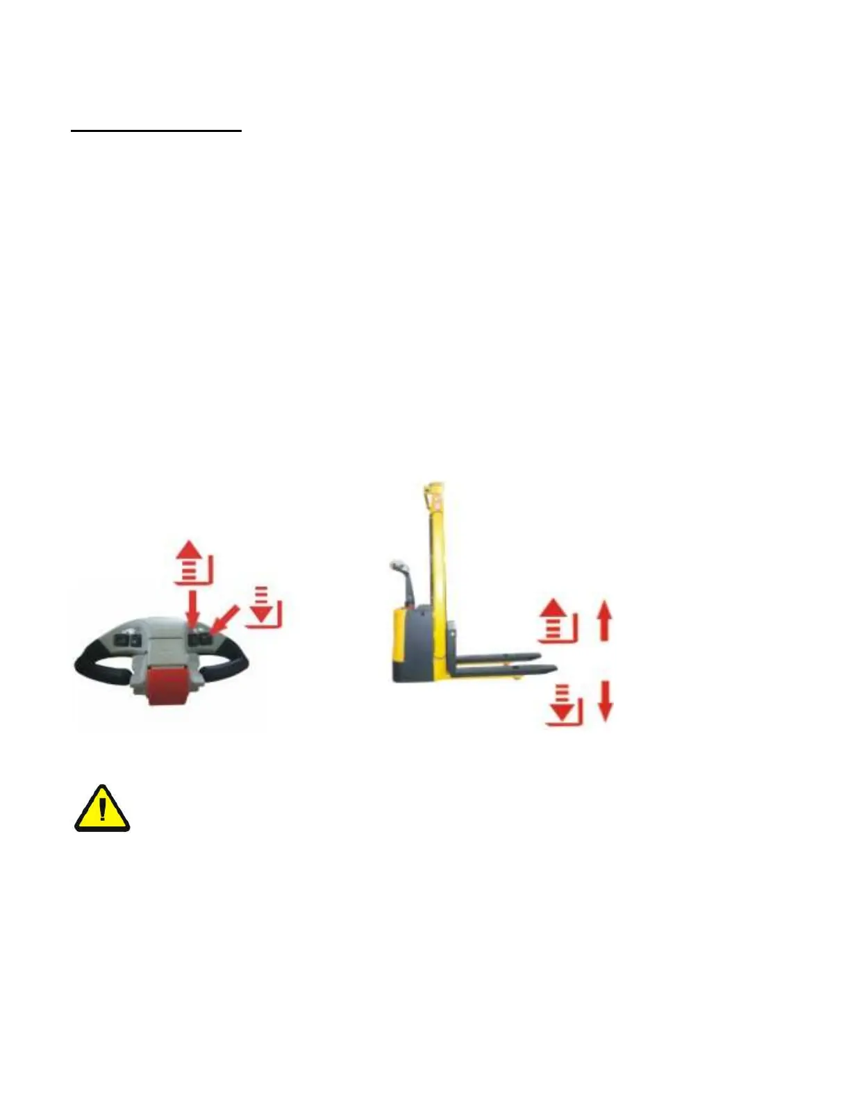 button for raising the forks and one button for lowering the forks. Always make sure when lifting