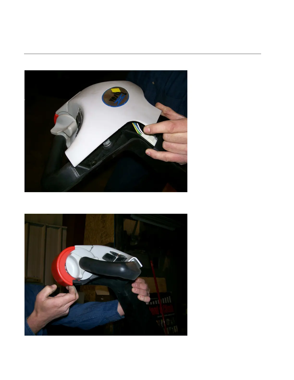 Carefully pull the belly switch back off of the tiller while tipping the front up.