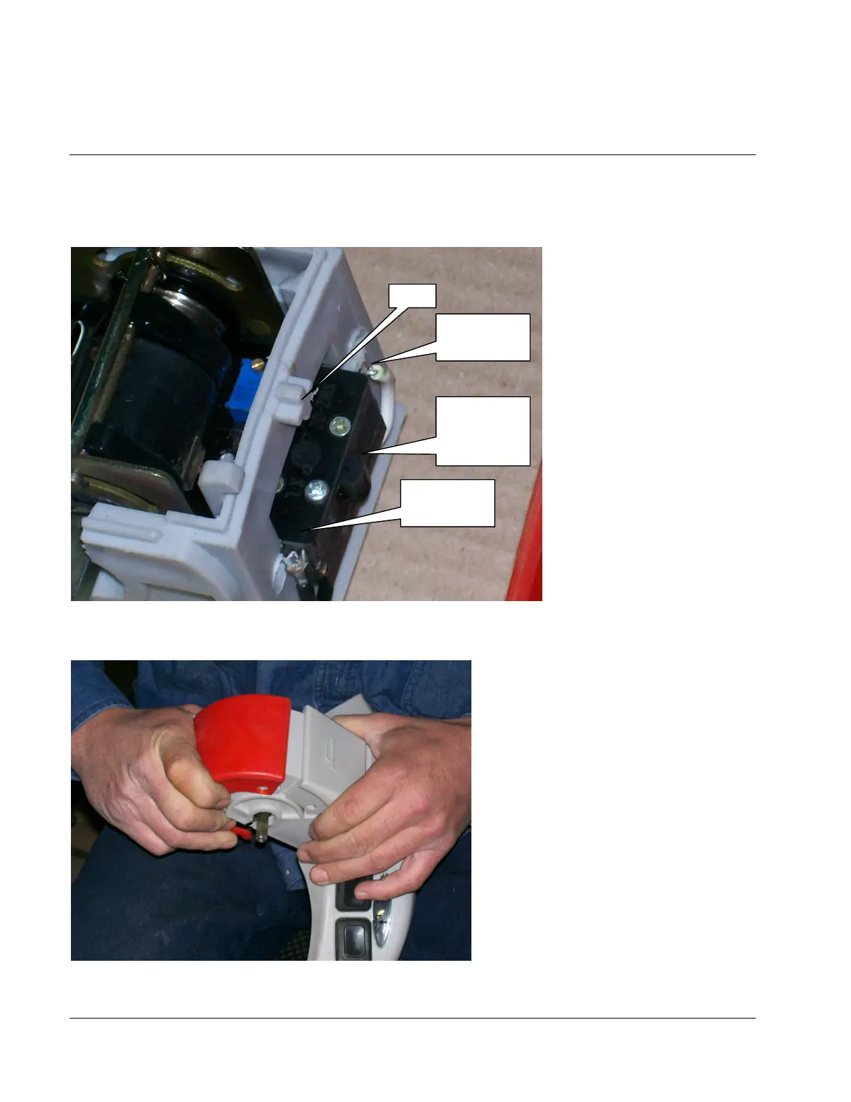 Replace any broken/missing components. To assemble, press the red belly switch cover back on the tiller head seating the
