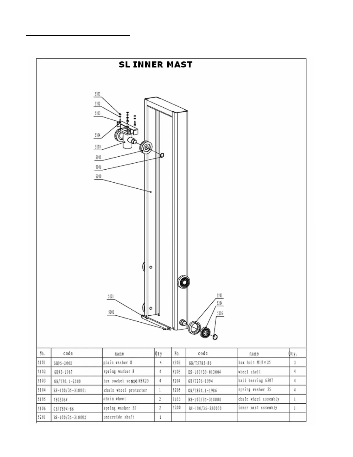 Inner mast drawing