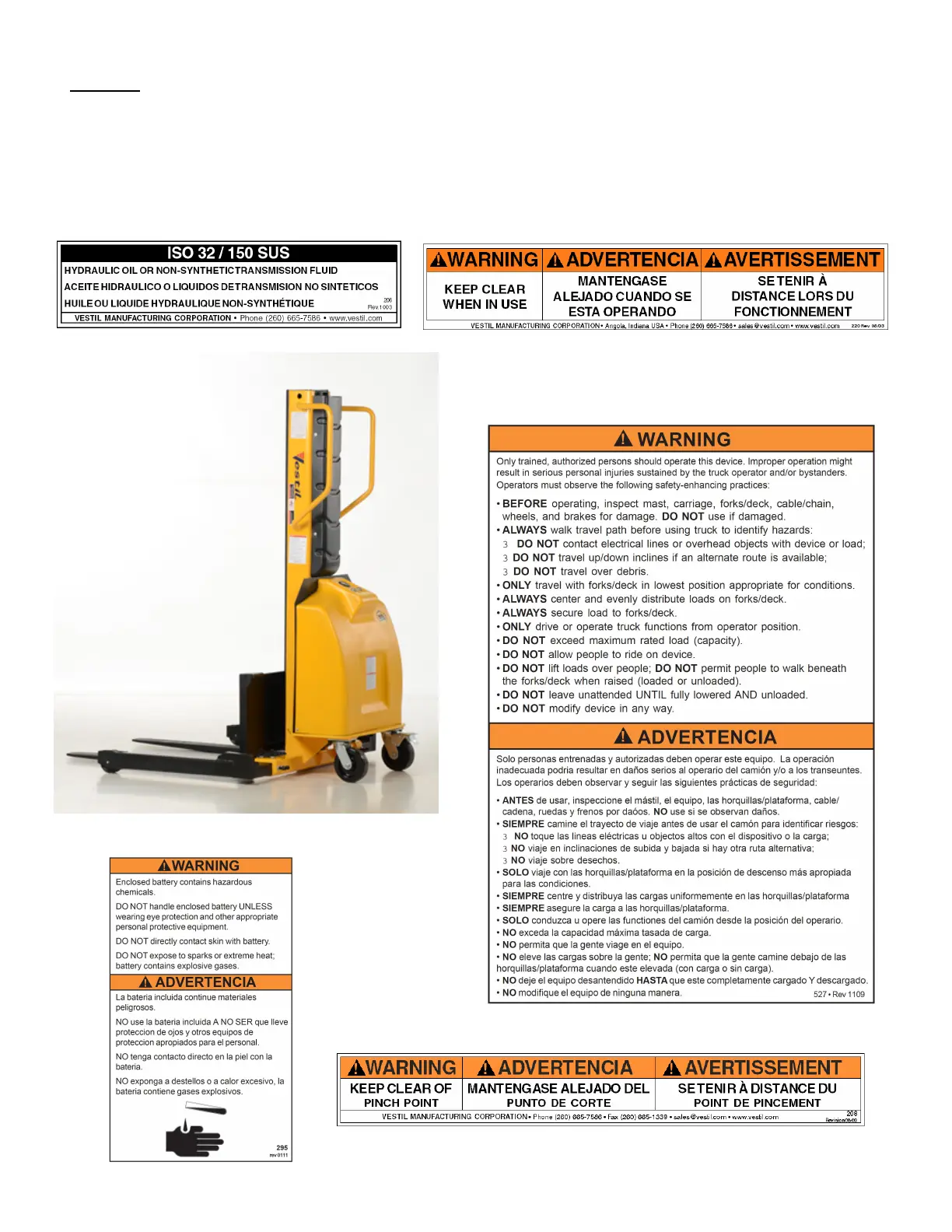 Only use the lifter unless ALL labels are readable and undamaged. Contact Vestil for replacement labels if