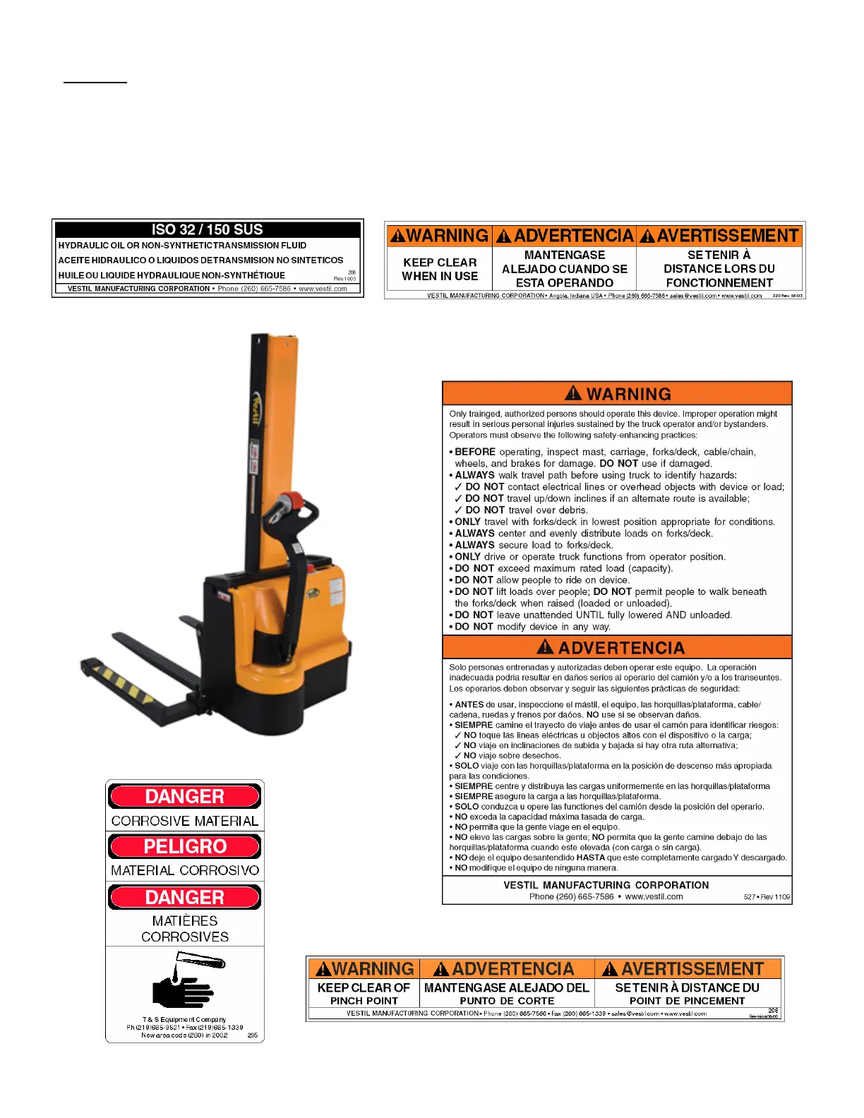 Only use the lifter if ALL labels are readable and undamaged. Contact Vestil for replacement labels if necessary,