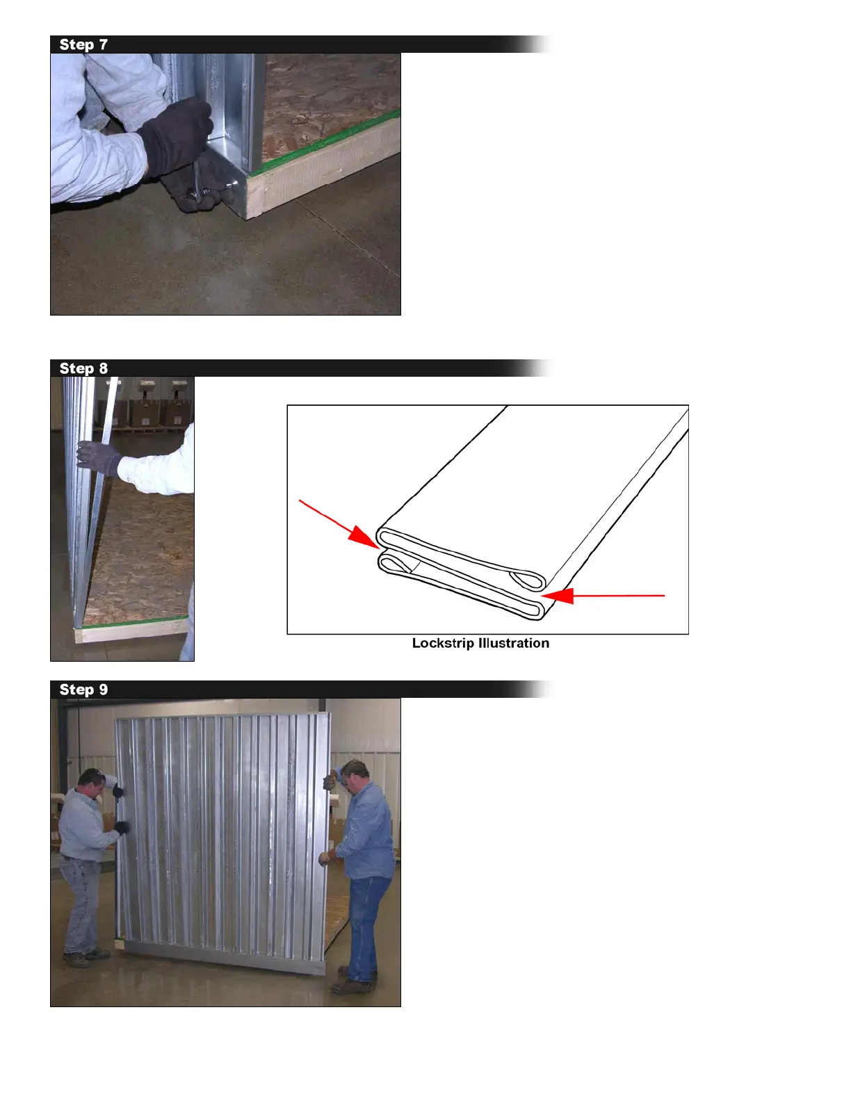 Install one side wall by inserting into the lockstrip just installed on the back wall vertical end.