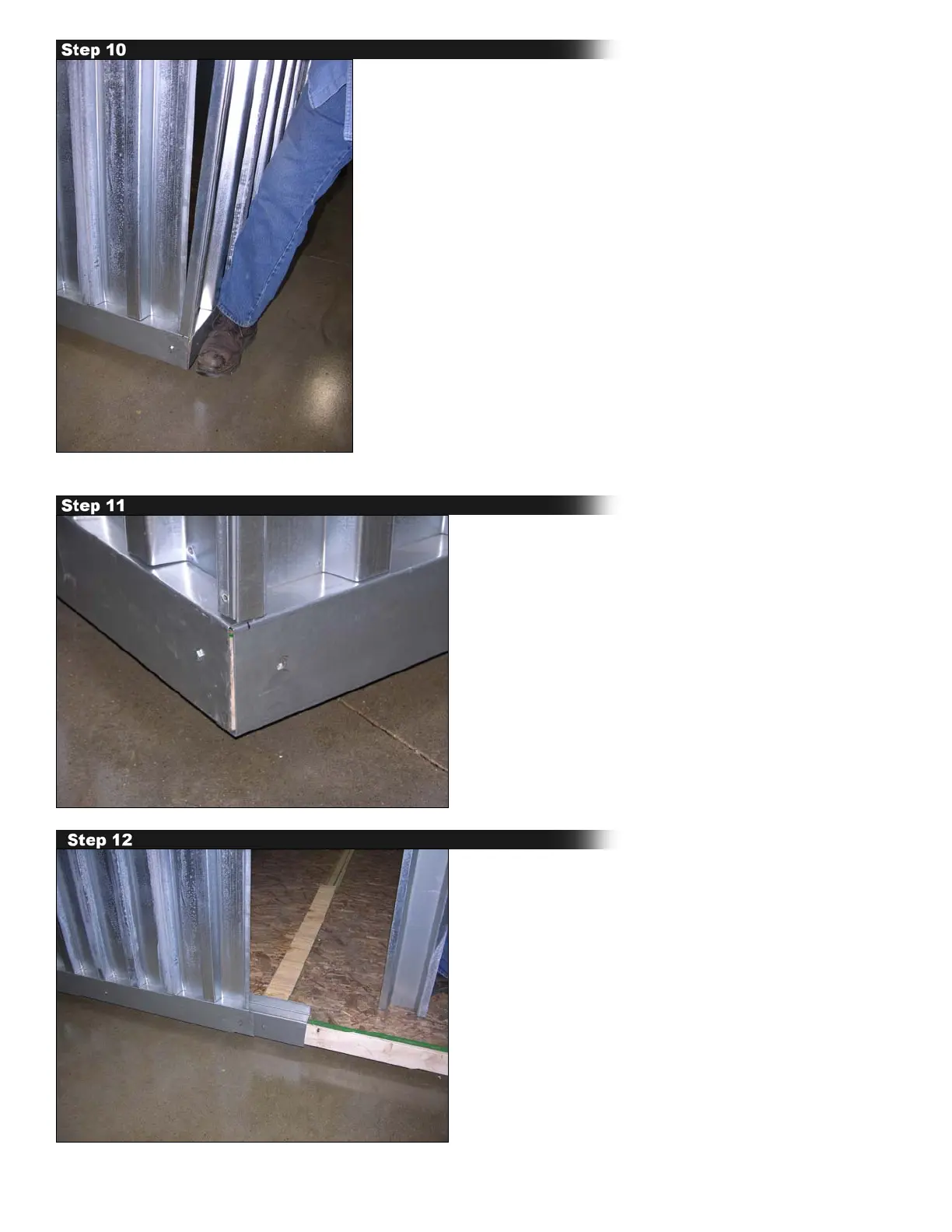 Install lockstrip on end of side wall and then install Side Fill Panel, as seen above on right hand side (see step