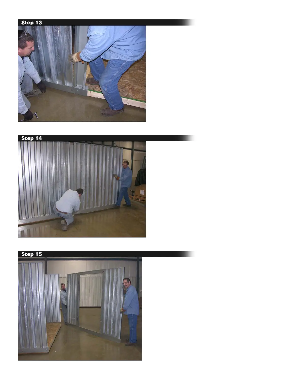 Install next side wall panel. Repeat on other side wall. Then install 10pc ¼”X2” lag bolts to secure walls to