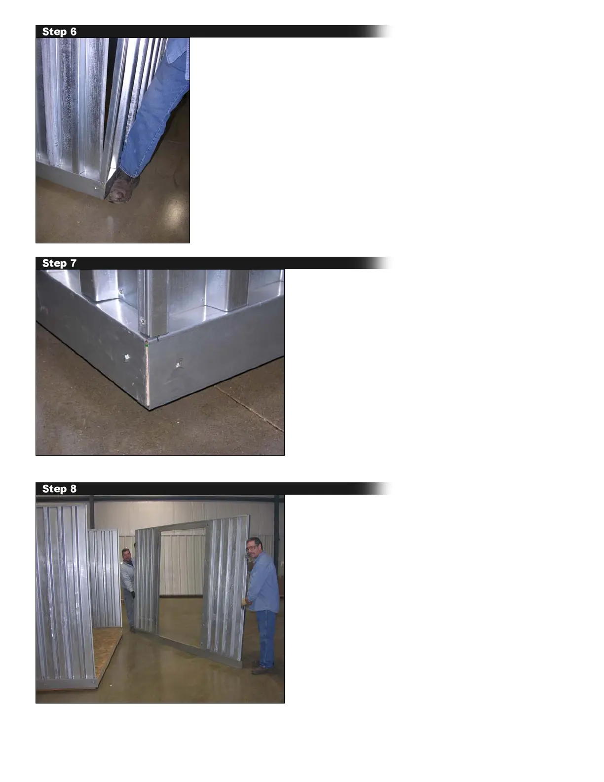 Install lockstrips (2) on side walls, then insert front wall into lockstrips. Install lag bolts, ¼” X 2” lag bolts,