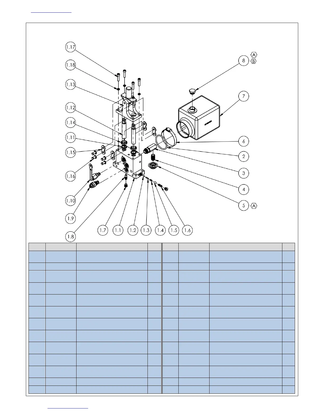 MANUAL HYDRAULIC PUMP EXPLODED VIEW AND BILL OF MATERIALS