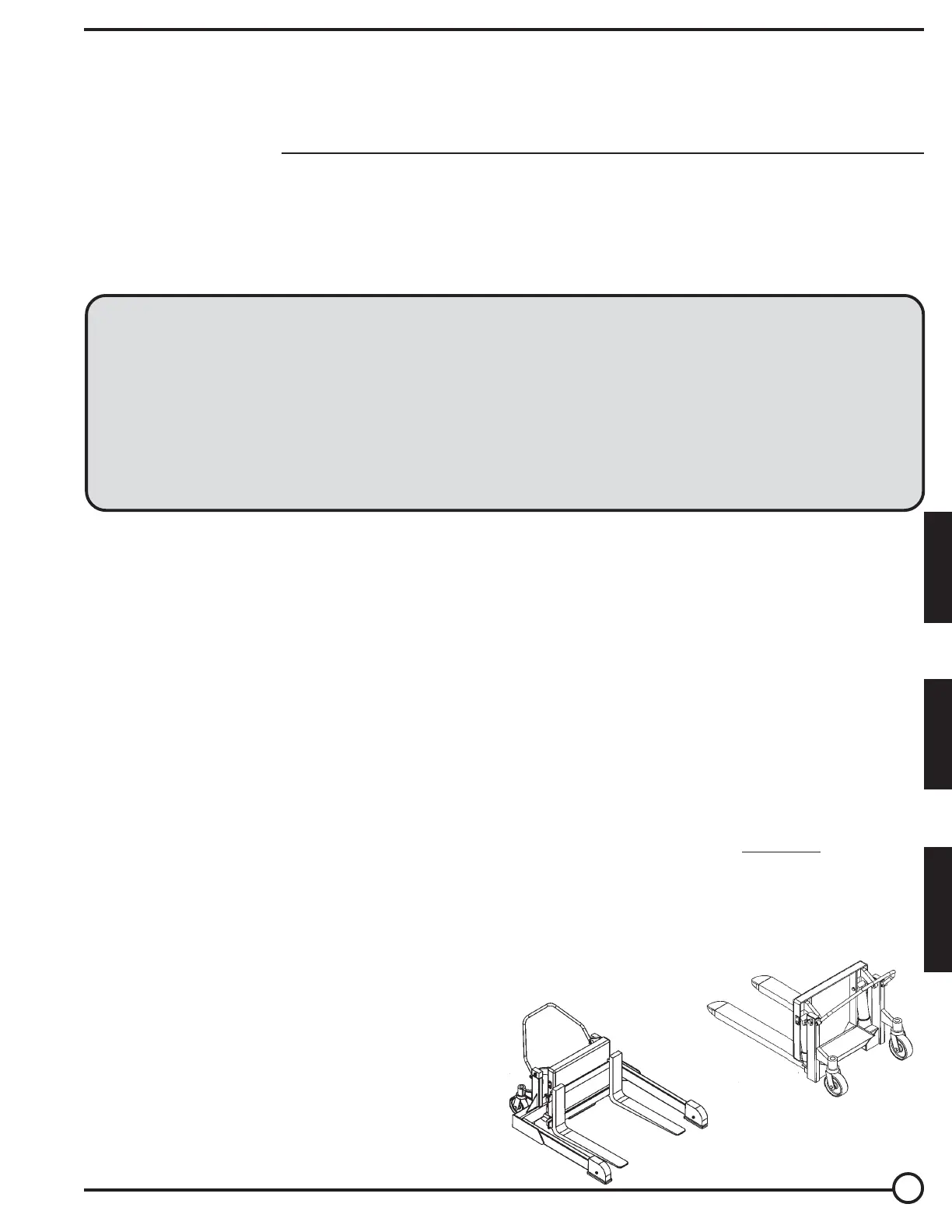 • Before transporting the container, raise the forks slightly.