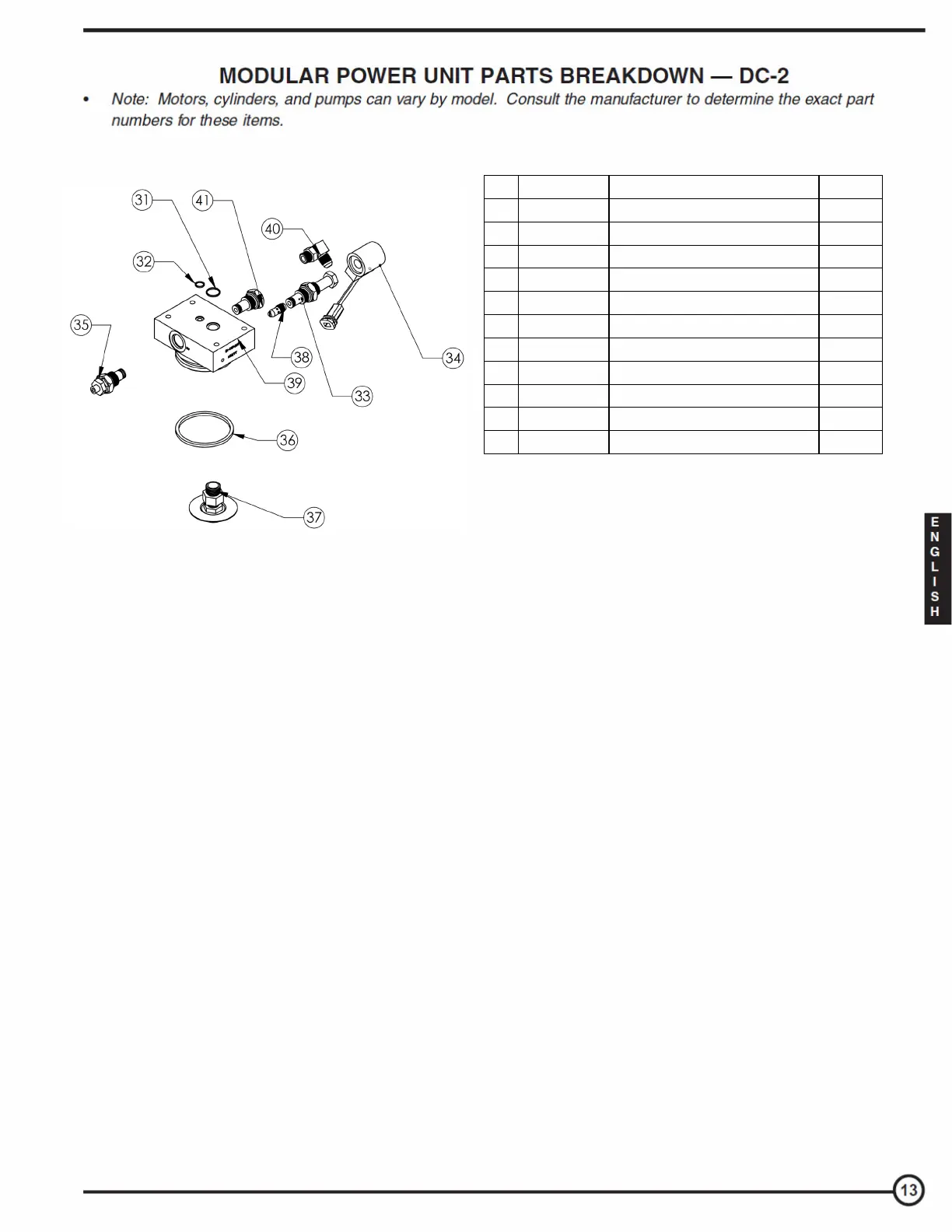 Item Part no. Description Quantity