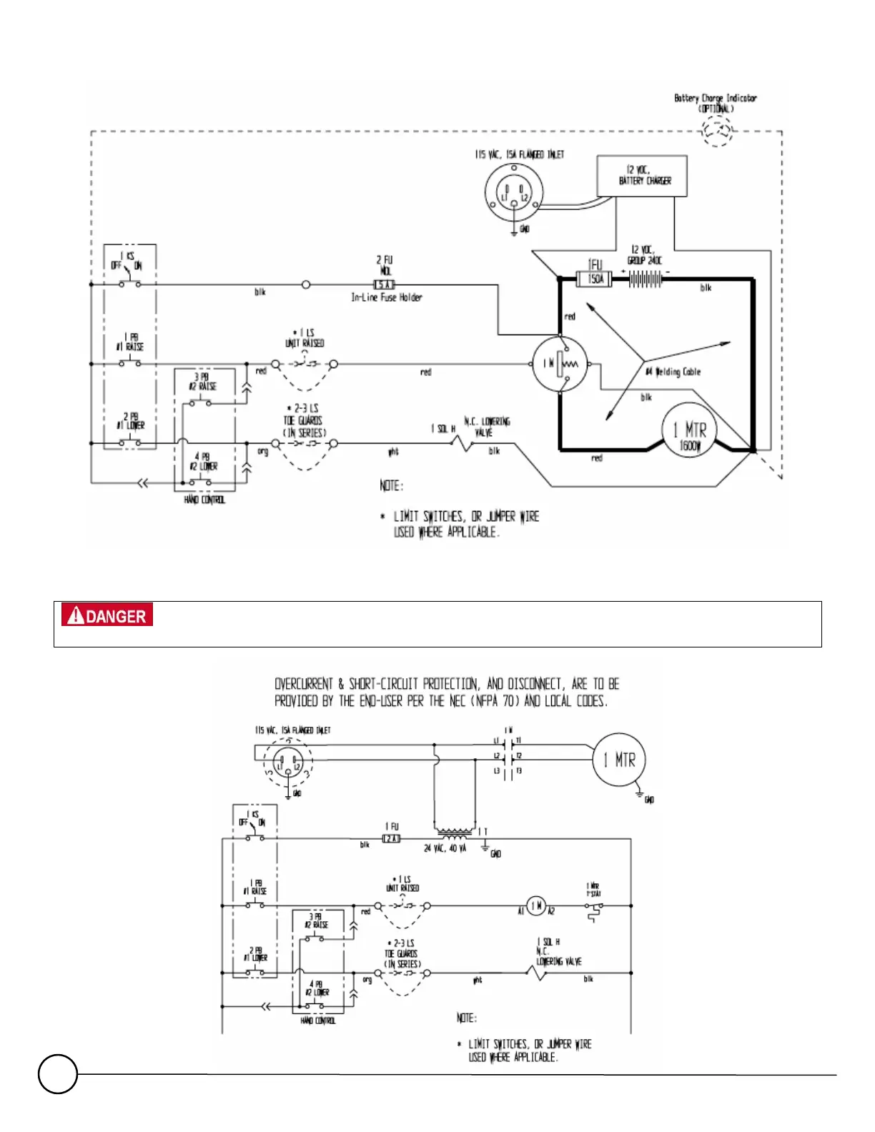 Mobile Power Unit electrical system diagram, DC configuration (battery powered)