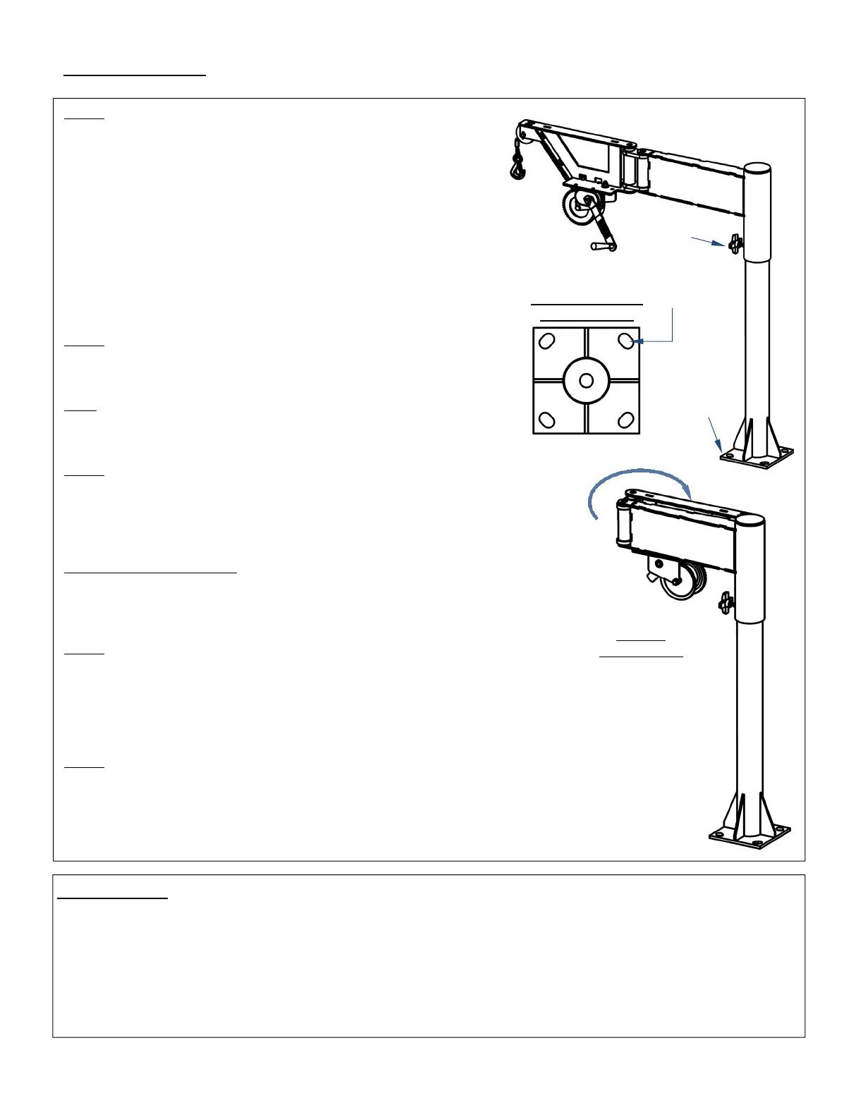 1. Test the mast bearing: Rotate the boom in both directions. Make sure that it rotates smoothly. Listen for unusual