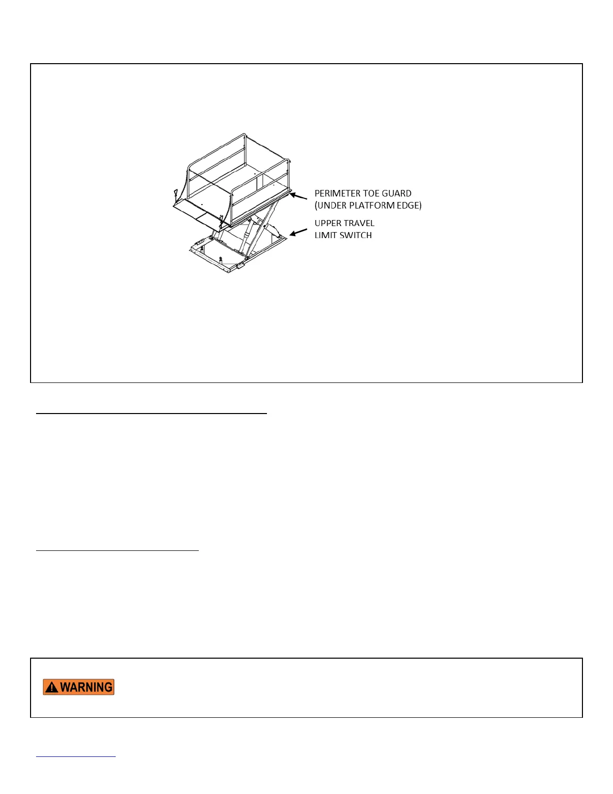 travel of the platform. DO NOT place a lift table in service if either of these devices isn’t functioning properly.