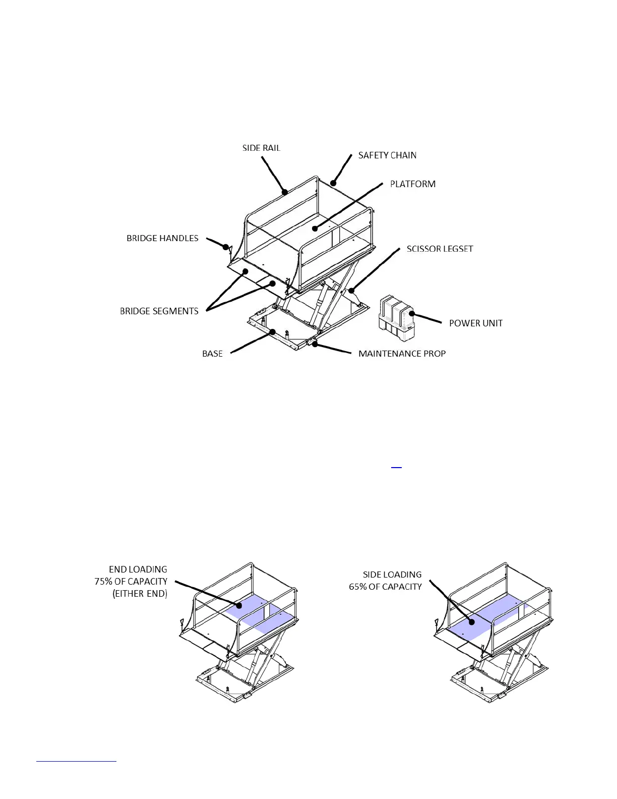 indicates the net capacity of the Dock Lift for a static load, centered and evenly distributed on the platform. Consult ANSI