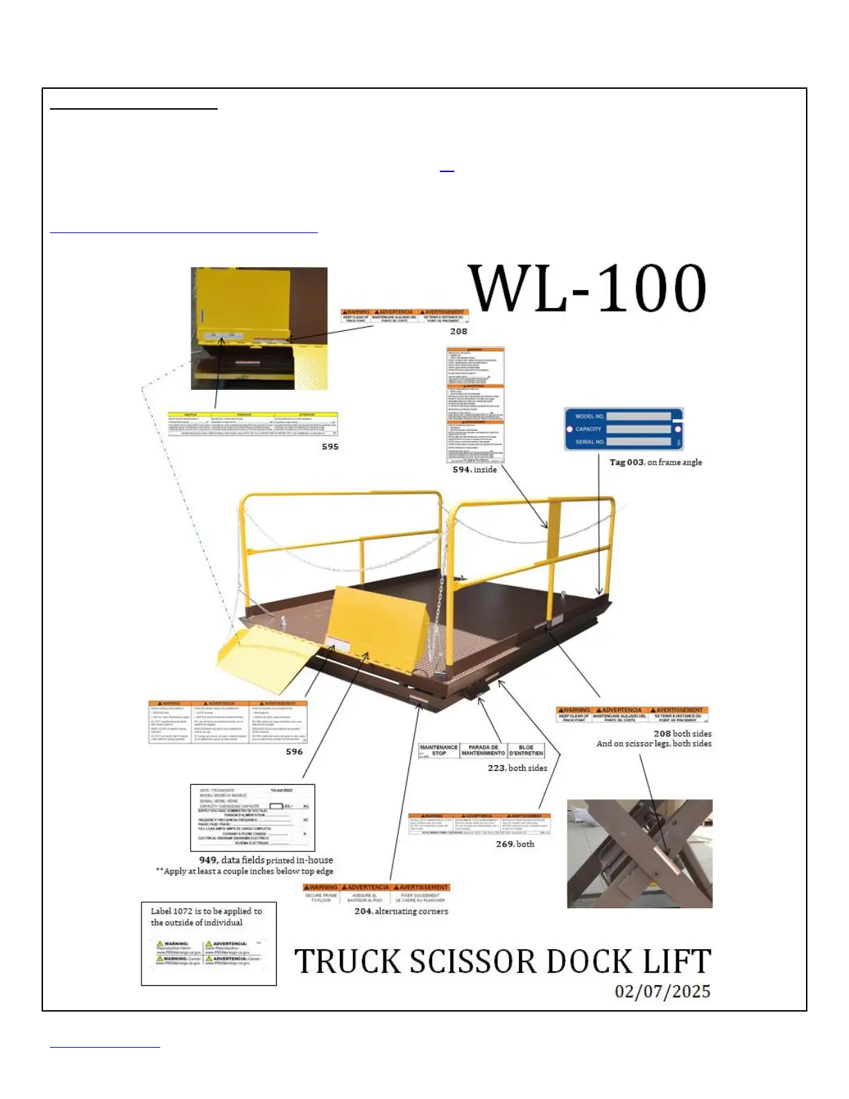 TheDock Lift should be labeled as shown in the diagrams. However, label content and location are subject to change so