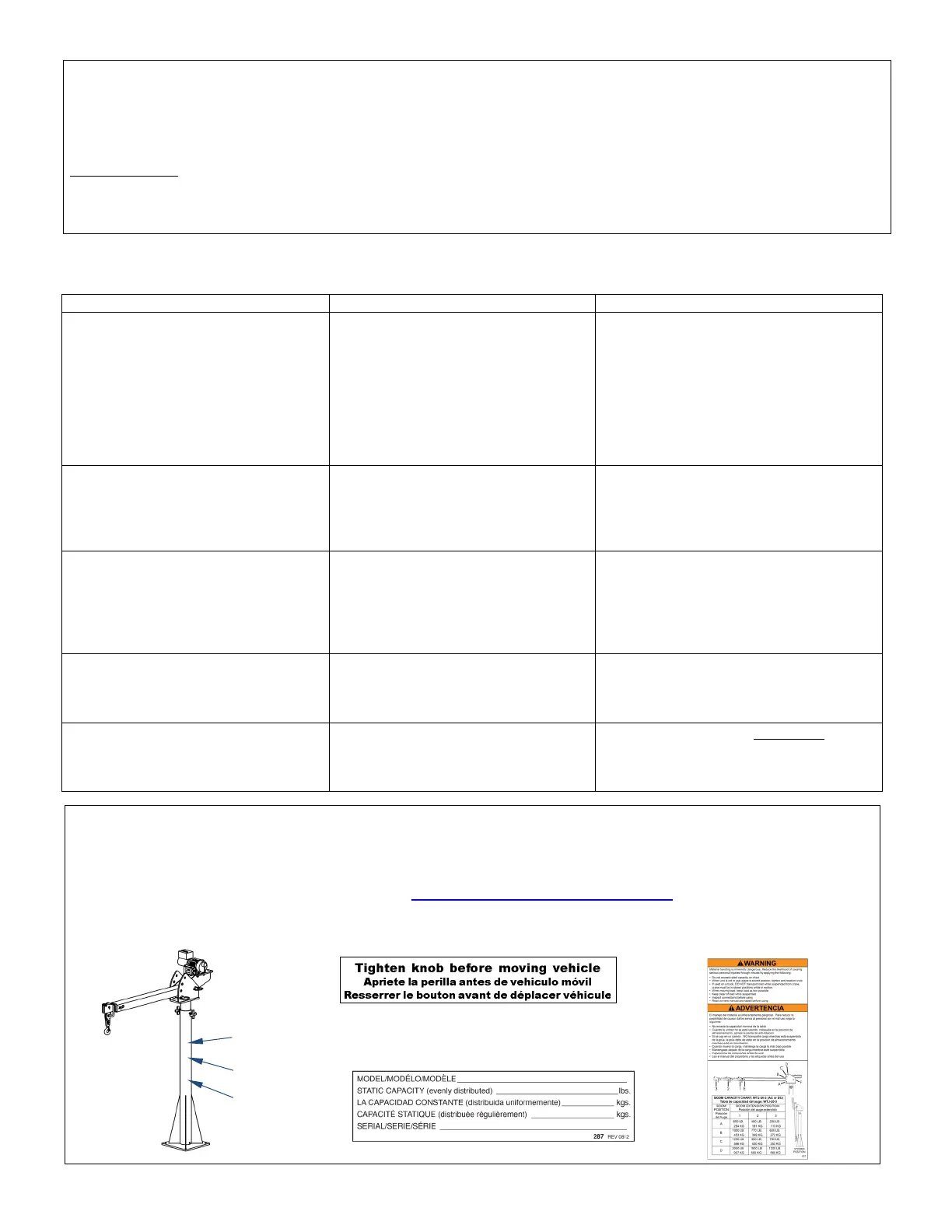the vehicle bed/floor particularly around the anchor bolts. Make sure that the mast is securely anchored (i.e. does not