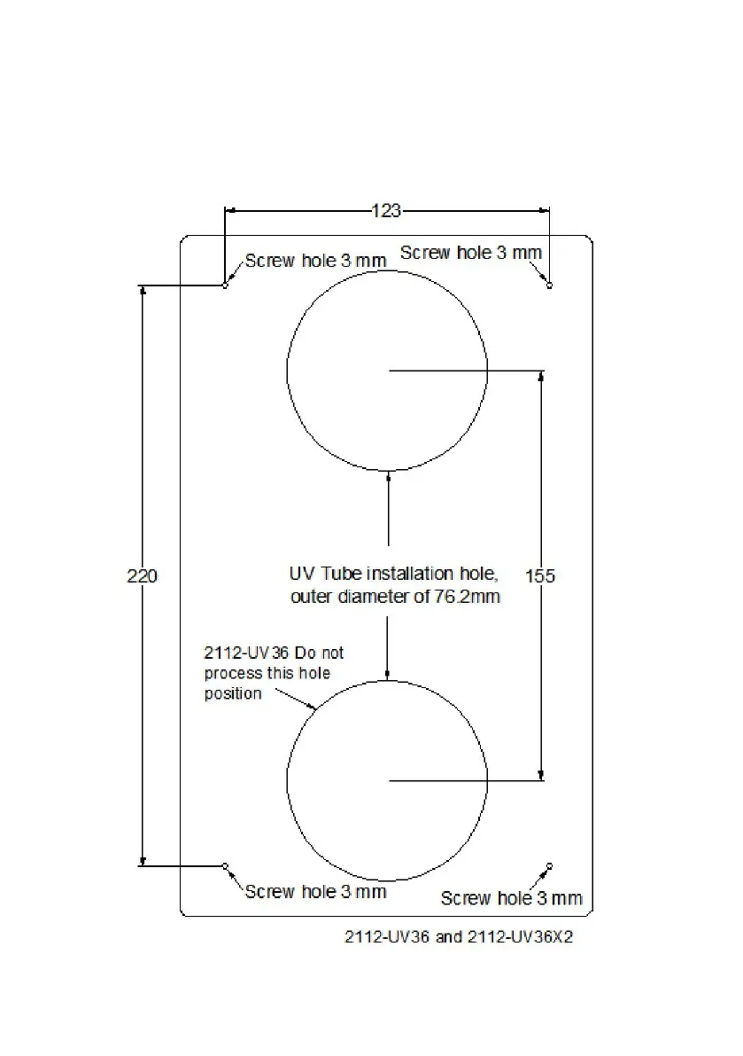 3B. Refer to the 2112-UV36X2 positioning template, first draw the position