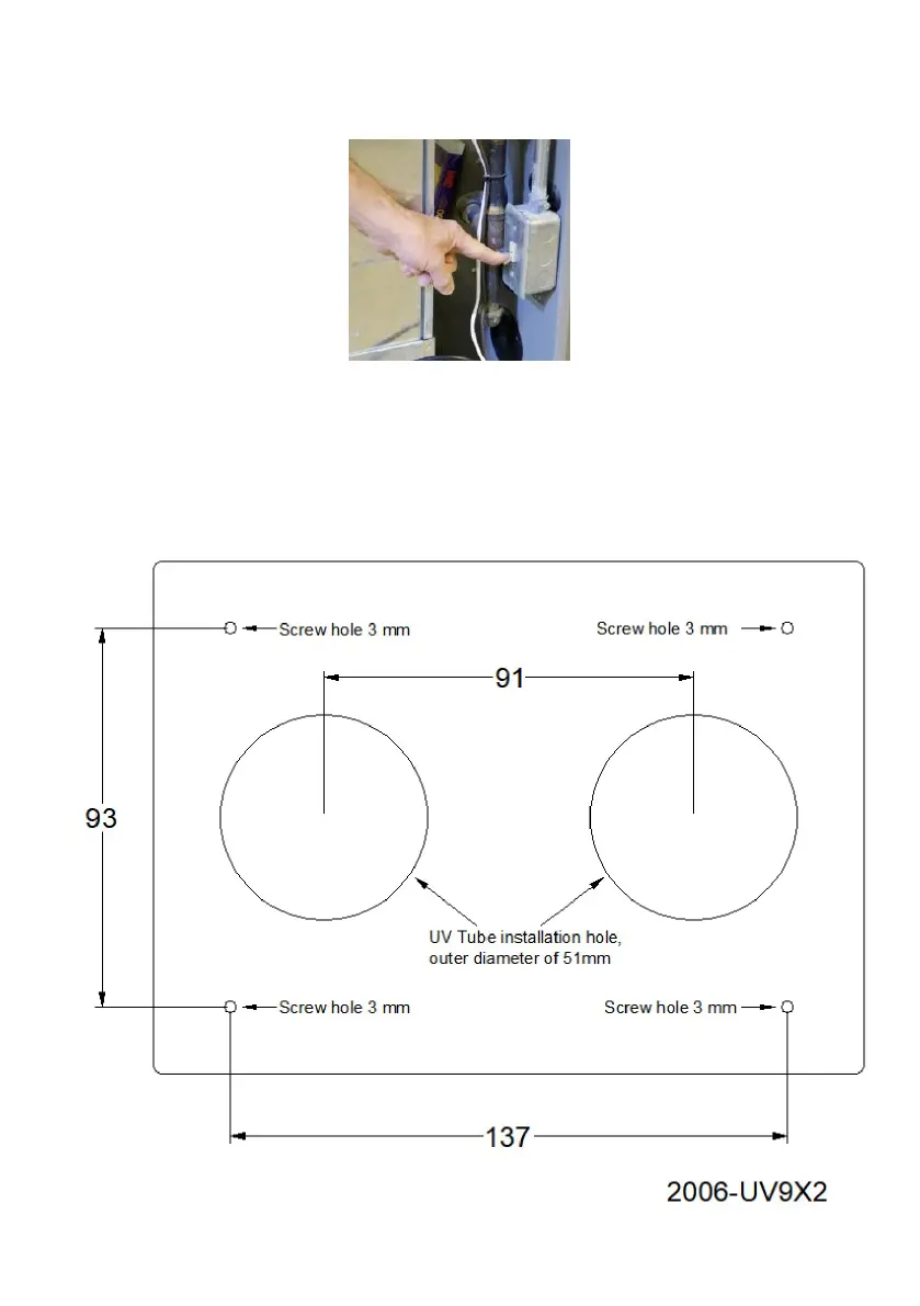 inclusief 2 gaten voor de lampenbuis met een buitendiameter van 51 mm