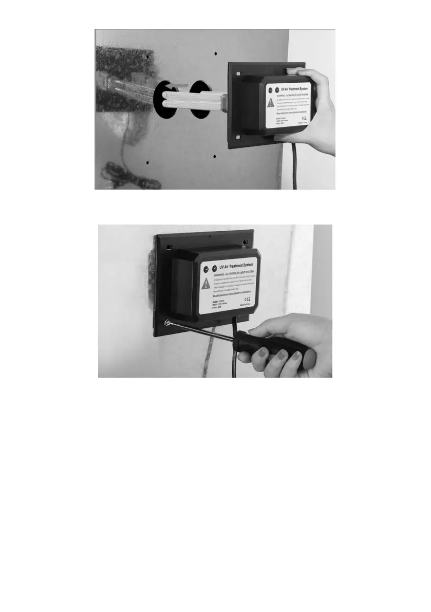 24. Zamontuj lampę UV na powierzchni rury HVAC za pomocą 4 śrub.
