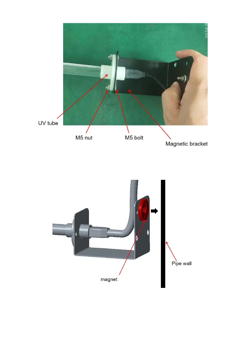 H. Das Produkt kann die Halterung mit zwei Schrauben im Rohr