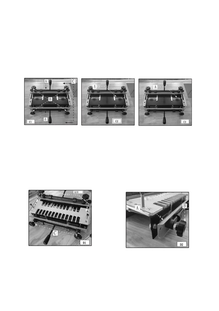 NOTE: Use a scrap board (A) Fig. C2 to prevent misalignment (A) Fig.