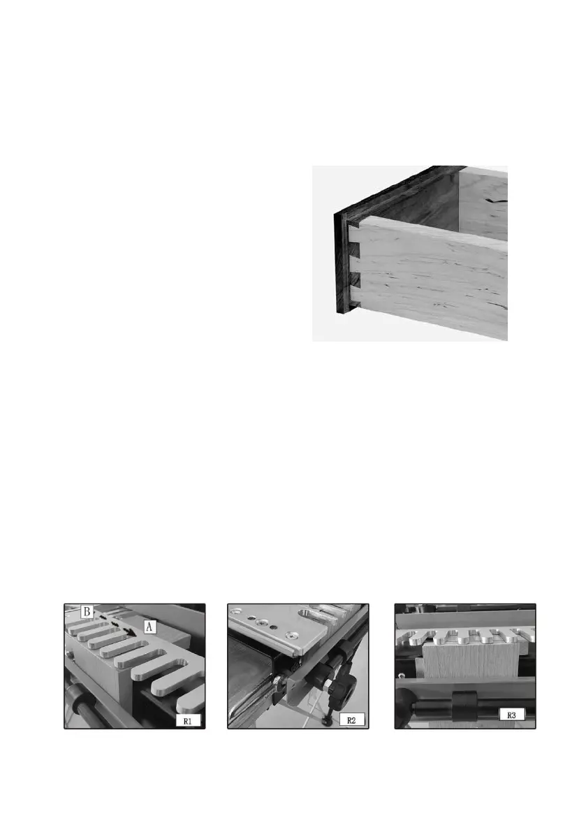 To produce rabbeted half-blind dovetails (drawer front), cut the pins