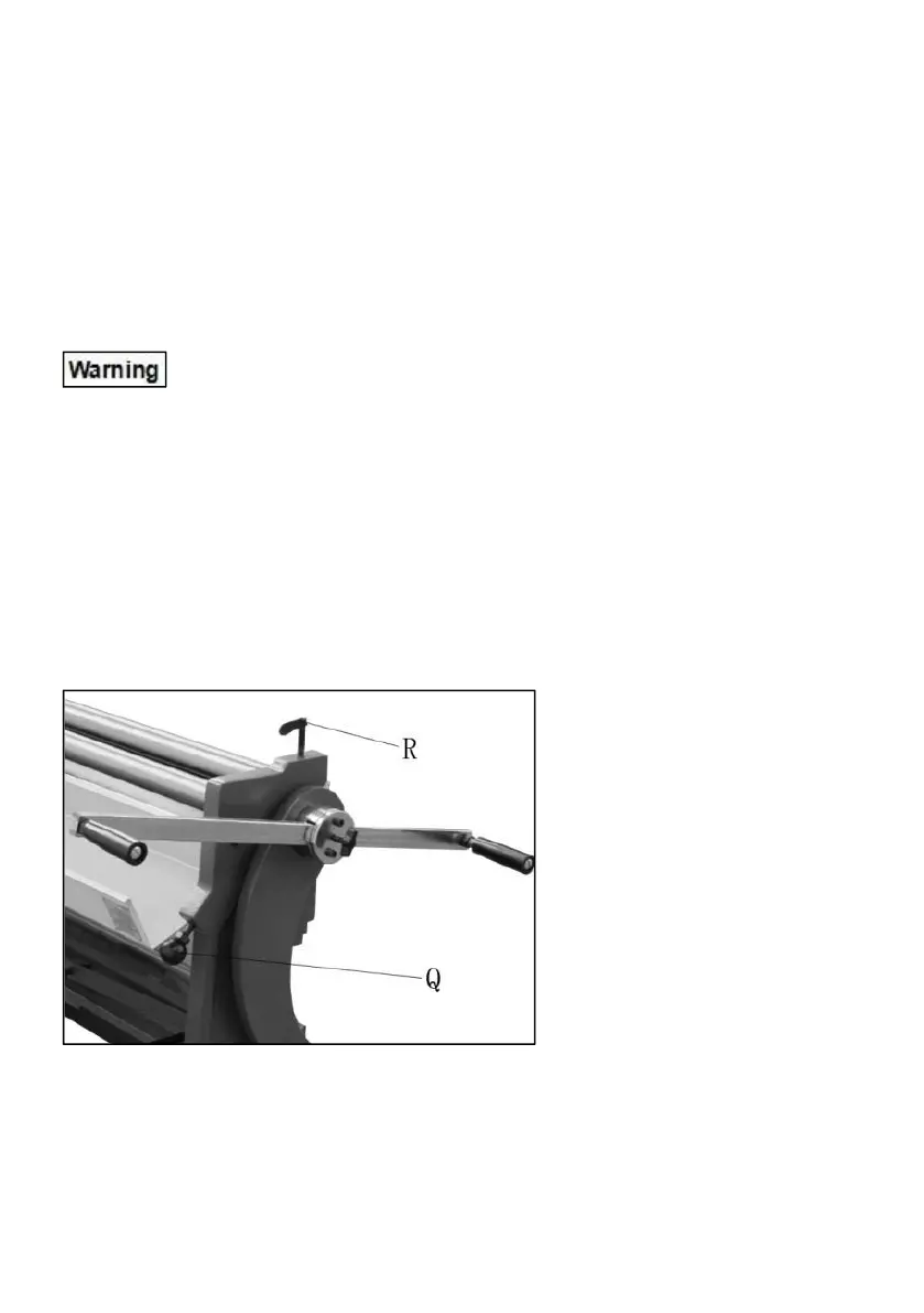4. Insert material between upper and lower rolls, and tighten bolt (R,