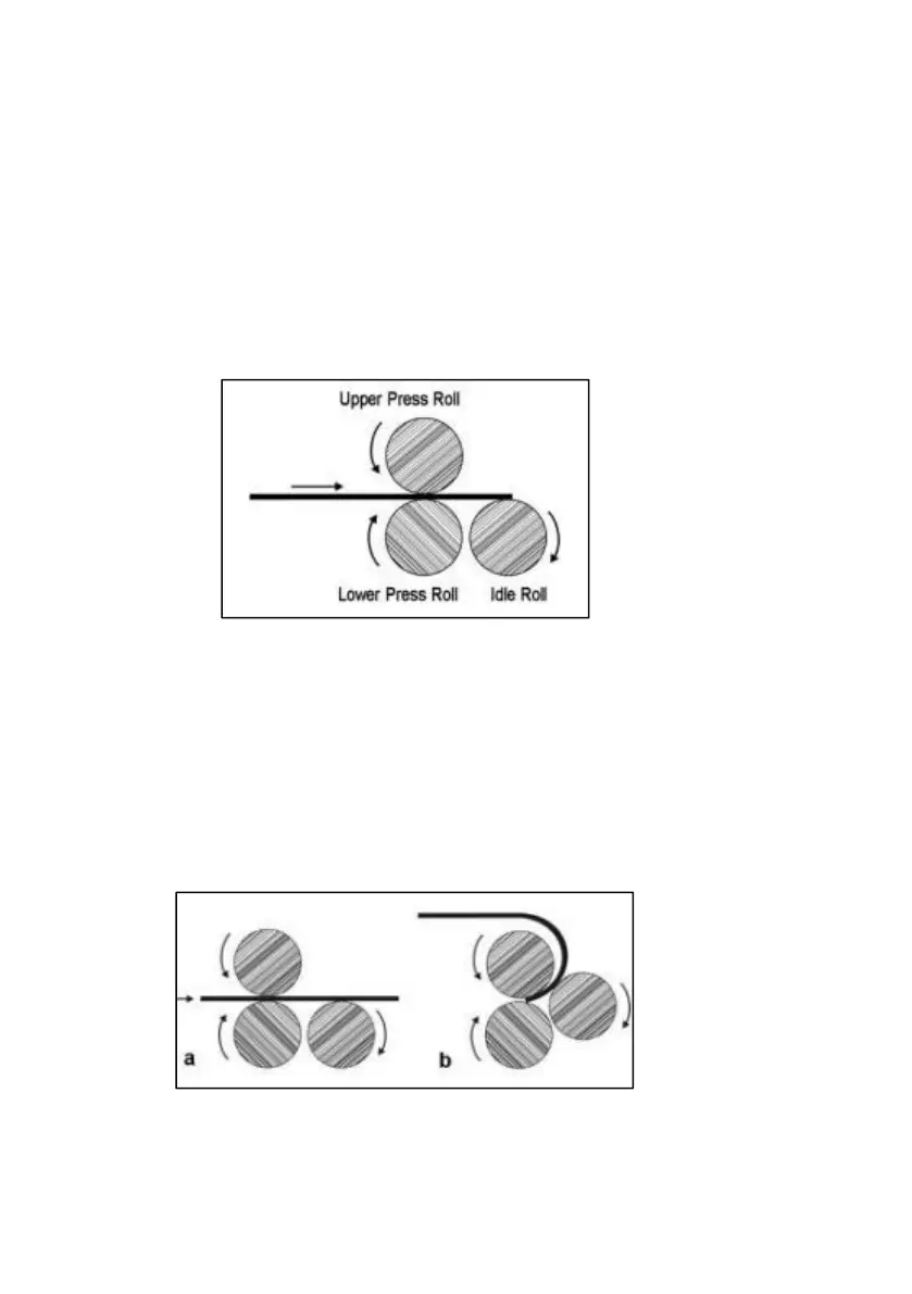 the upper press roll for thickness, lower idle roll all the way down, and feed