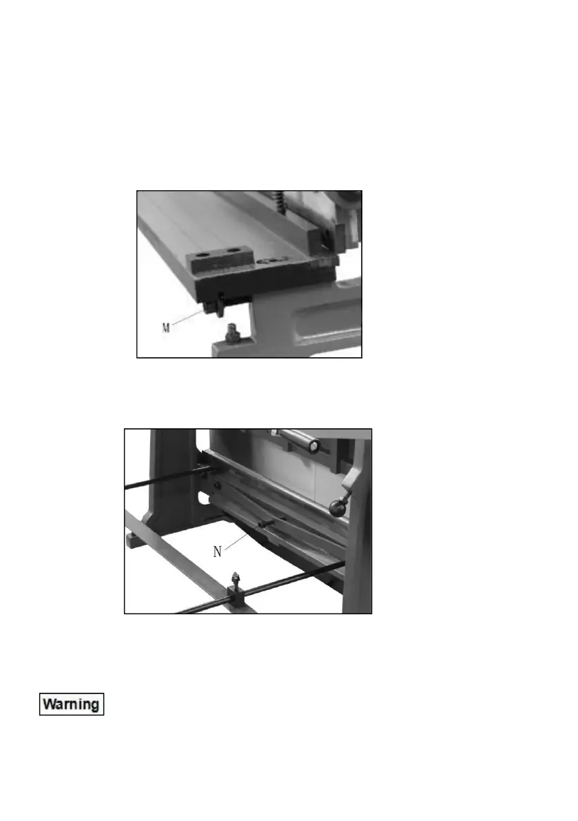 13. Durch Drehen der Einstellschrauben (M, Abbildung 8) kann der Tisch