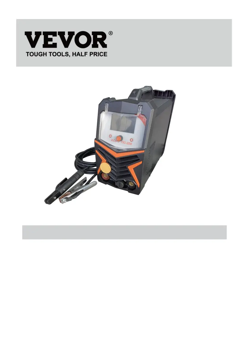 Bekijk gratis de handleiding van Vevor ACDC TIG-200, stel vragen en lees de antwoorden op veelvoorkomende problemen, of gebruik onze assistent om sneller informatie in de handleiding te vinden of uitleg te krijgen over specifieke functies.