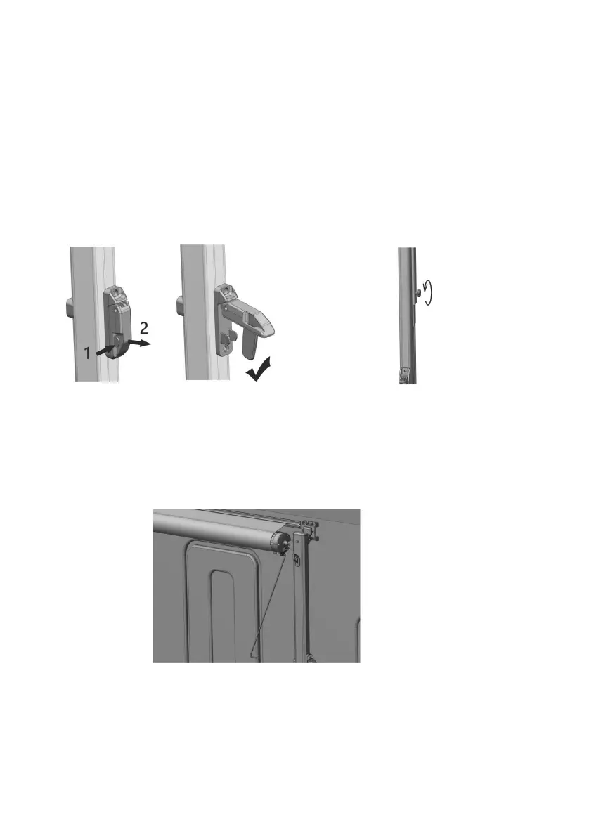 4.1.2 Agganciare la leva a cricchetto sul coperchio terminale del rullo con la bacchetta di trazione, delicatamente