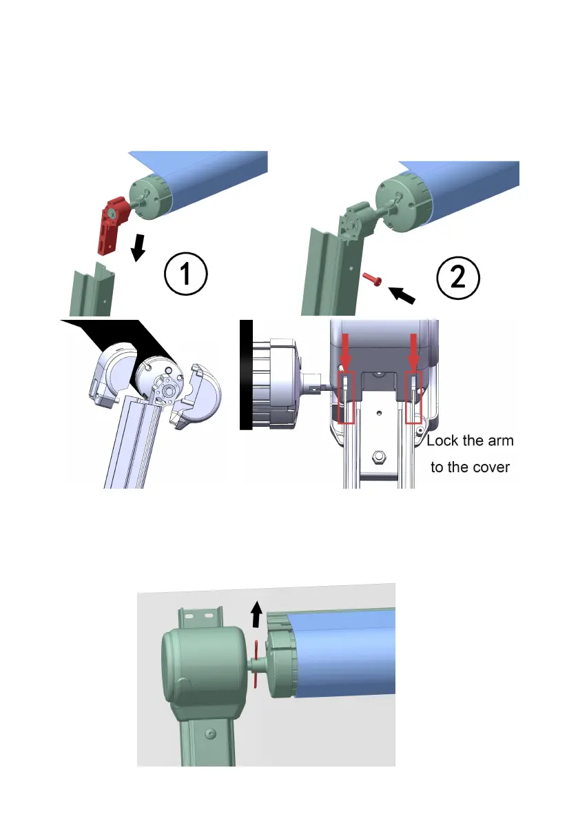 arm, fix it with Screws(all screws on the covers), and install the decorative