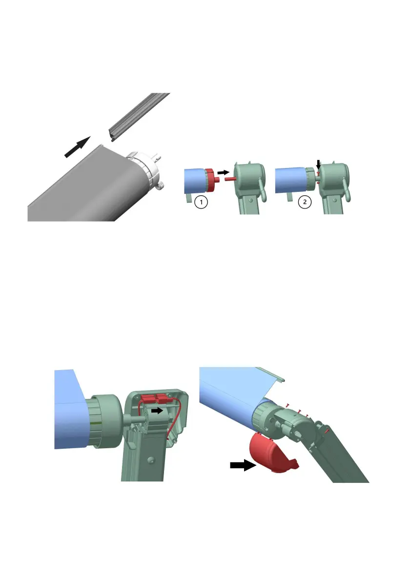 Setzen Sie die nicht motorisierte Seitenrolle und die Halterung in die Oberseite des Klapparms ein.