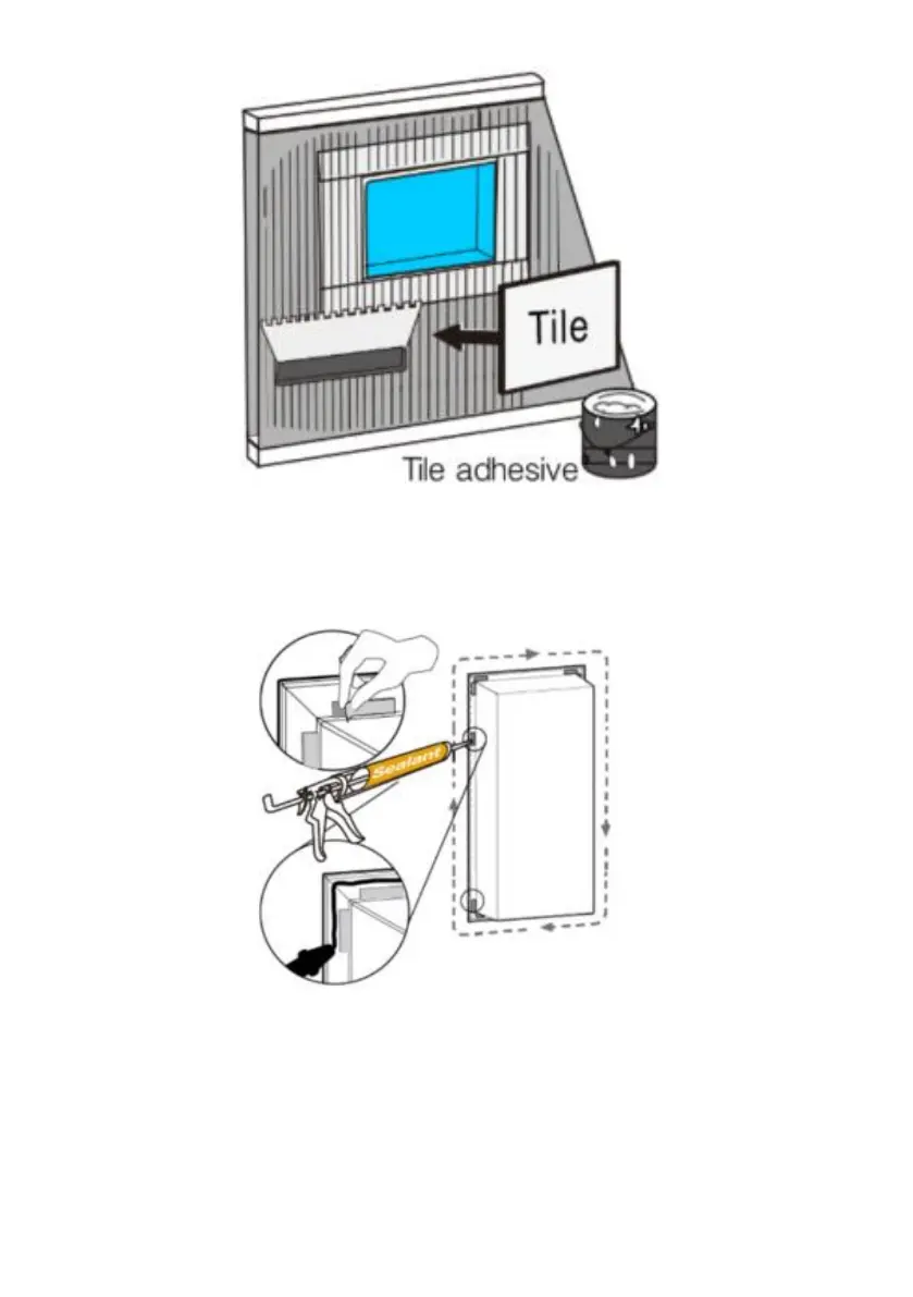silicon sealant from the inside corner of the niche to the edge Ensure