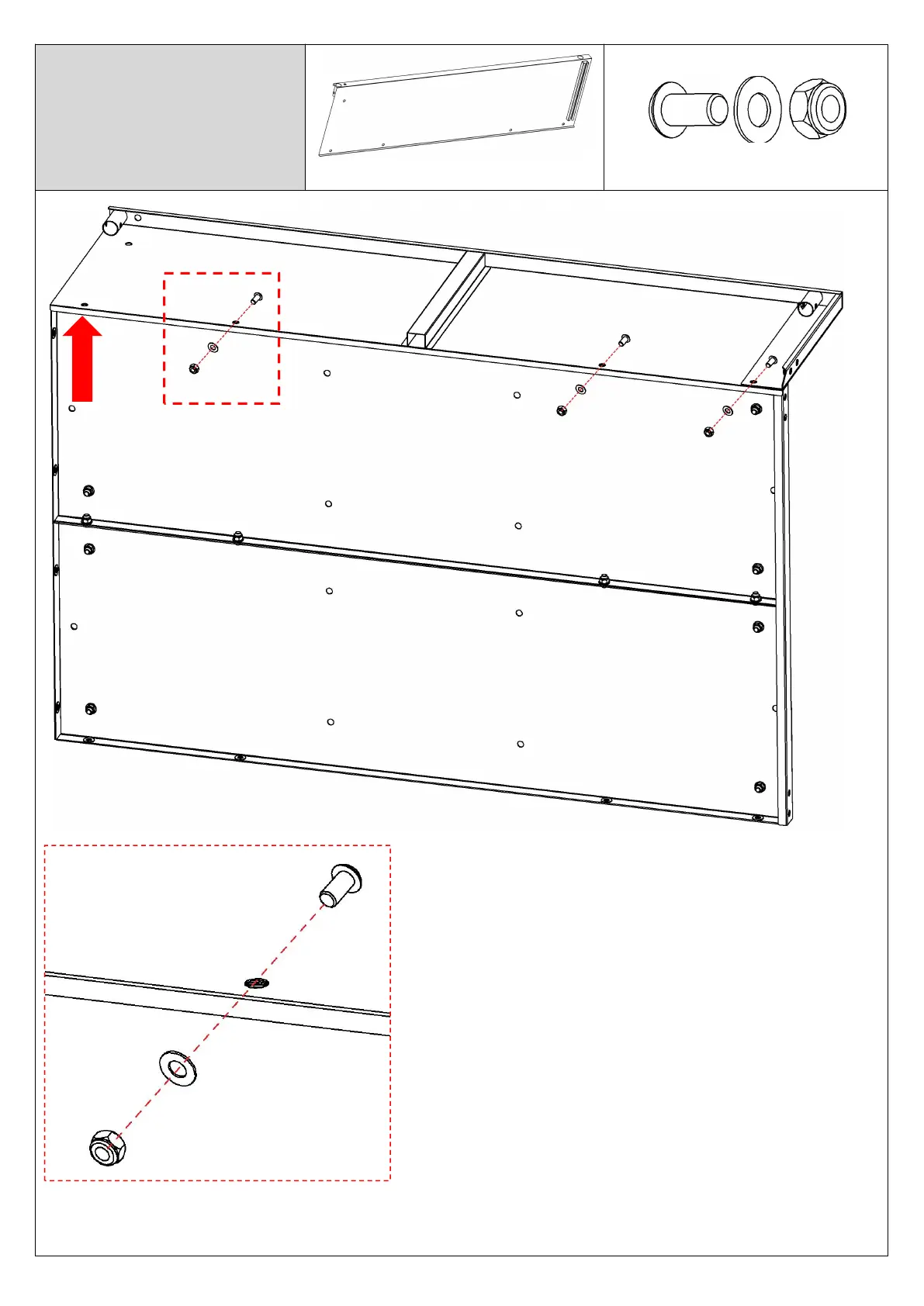 Caution: Do not install screws in the 1 marked hole (indicated by the arrow on the side panel).
