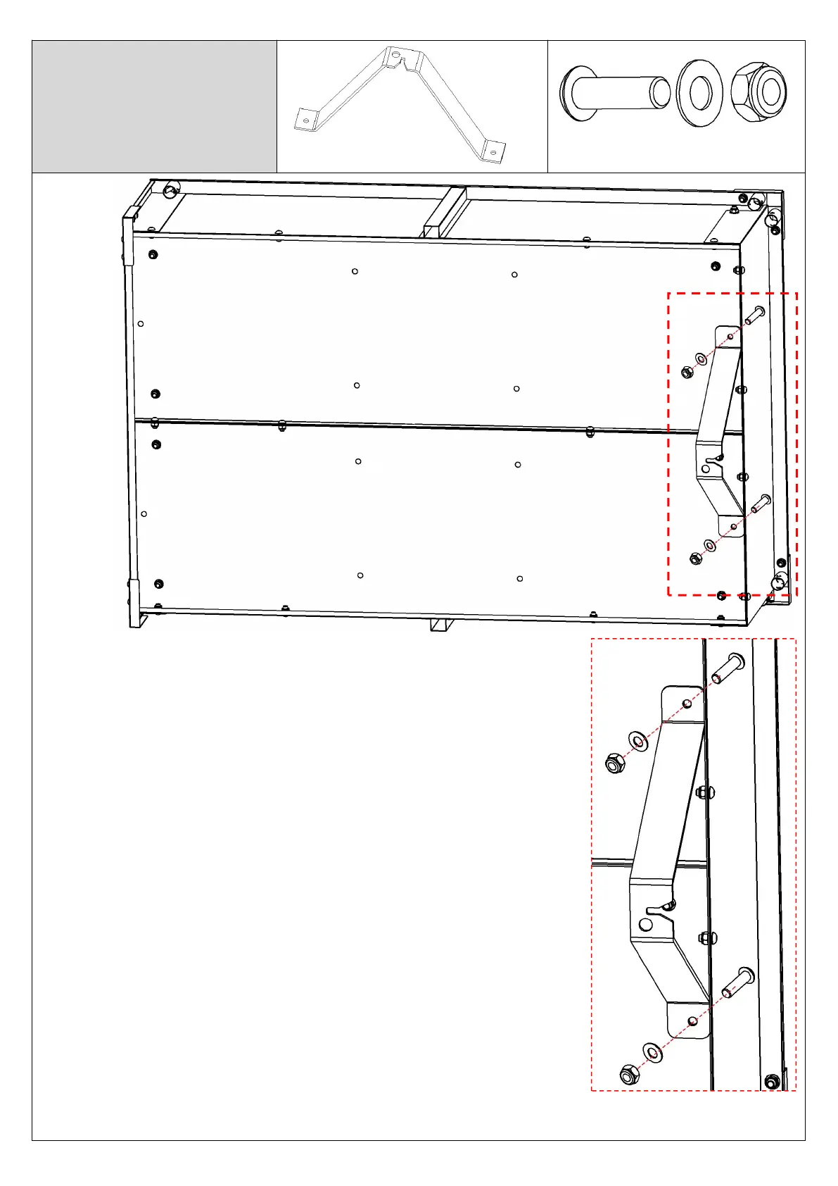 Montera det V-formade fästet (9) på bottenplattan och fäst det med motsvarande skruvar (B) (dessa