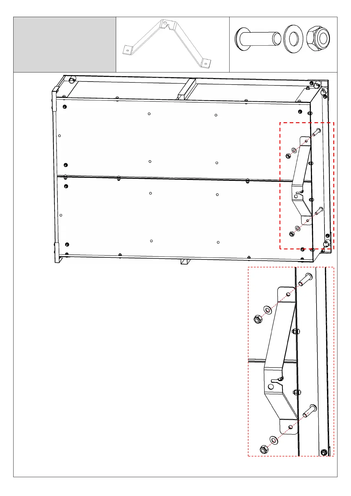 Install the V-shaped bracket(9) onto the base plate and fasten it with the corresponding screws (B)