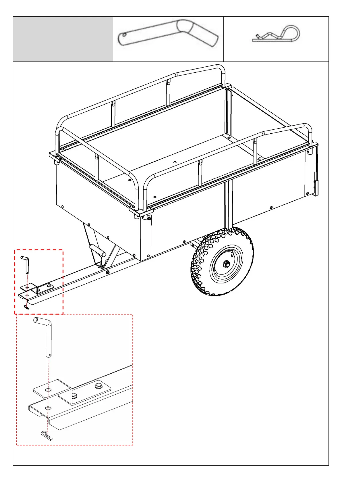 Veuillez insérer le boulon (E) dans le trou de la barre de traction (12) et le fixer avec une goupille en R