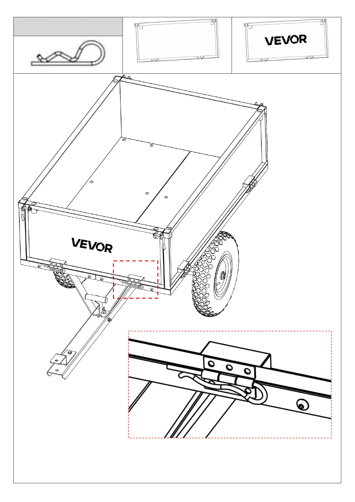 Install the side plate(9;10) on the base plate(1) and secure it with an R-pin(E).