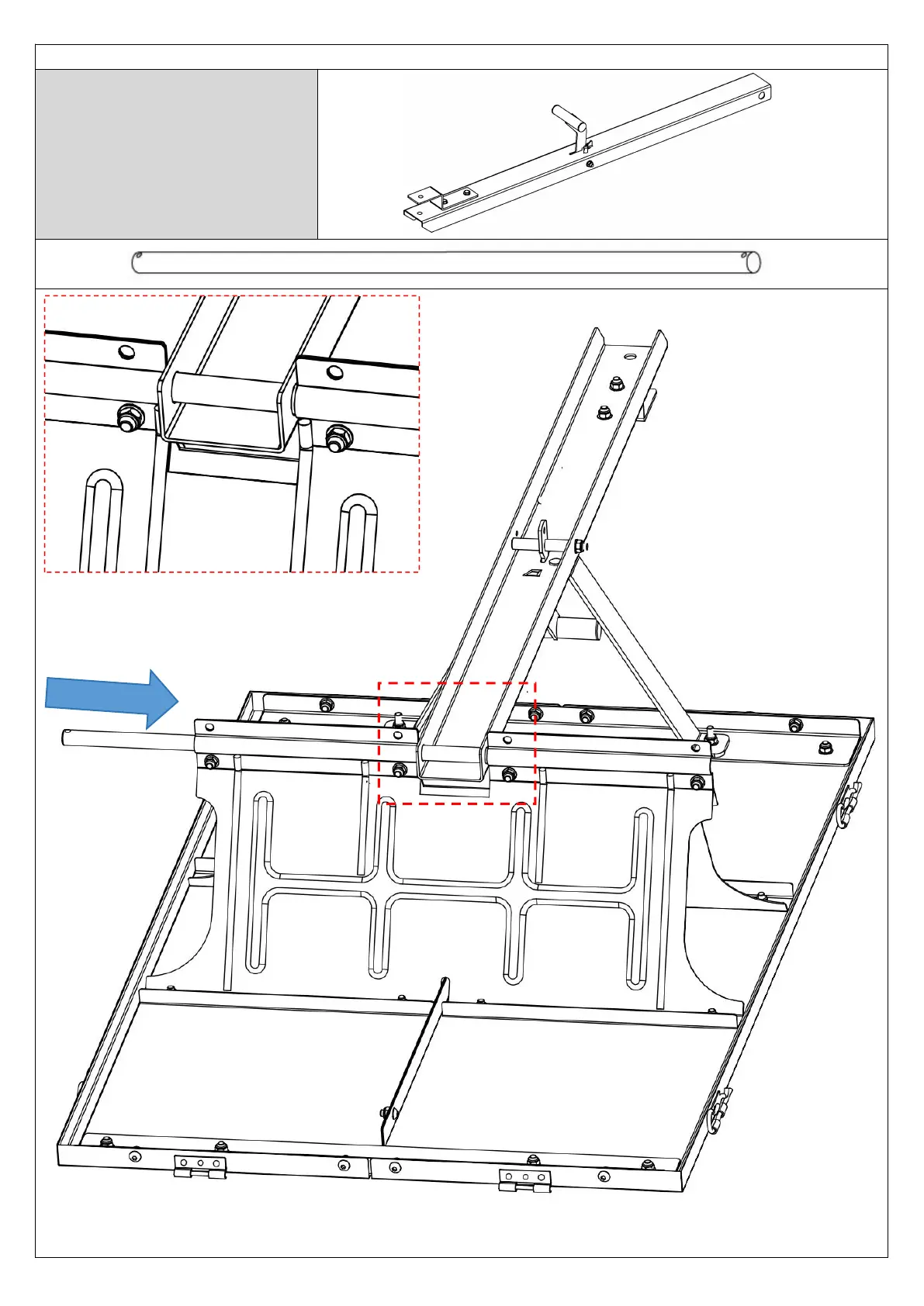 Pase el eje de hierro (5) a través de la ranura entre las placas de hierro e insértelo en la varilla de