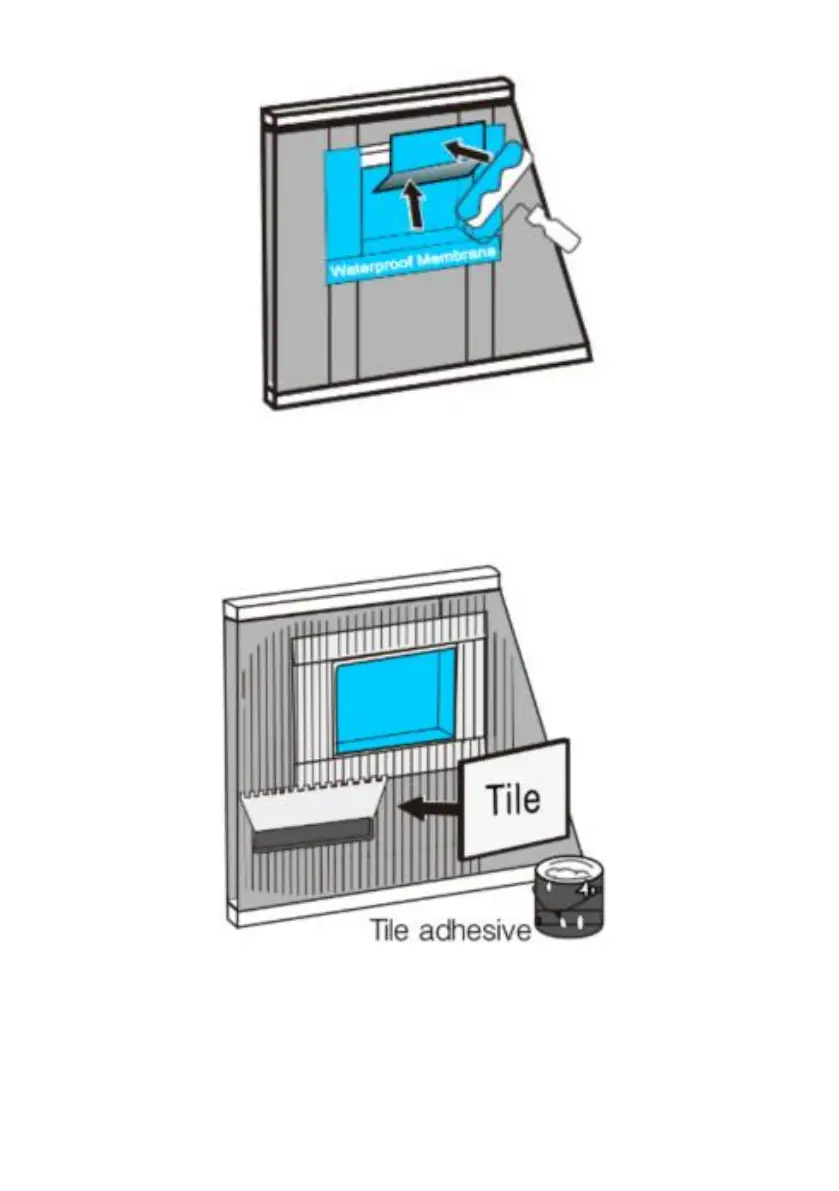 de grot liggen. De tegellijn kan direct op de nis eindigen voor een zeer